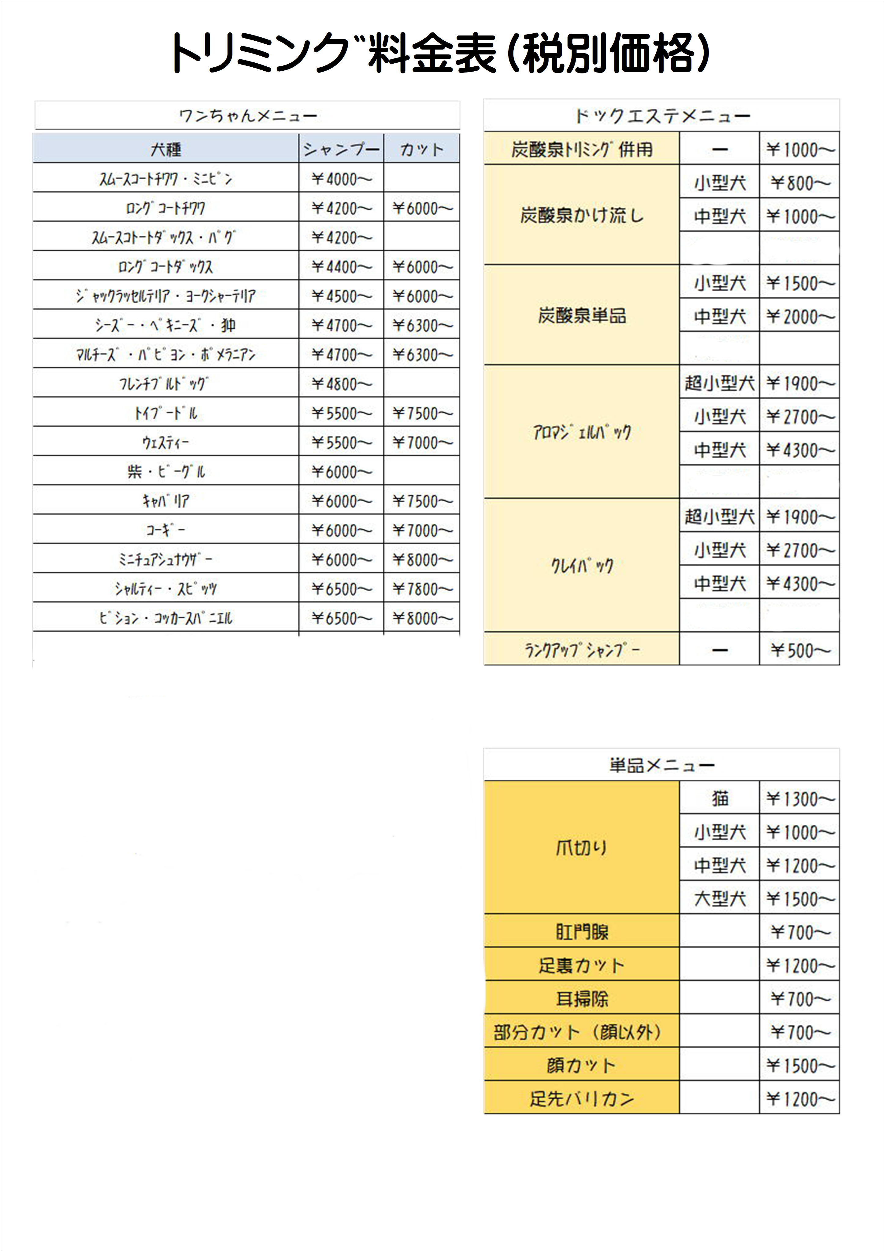 獣医師の指示のもと行っておりますので必ずトリミング前に診察を受けるようにお願いいたします。